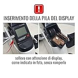 Il computer a batteria con ampio display LCD consente di visualizzare la distanza percorsa, la durata dell'allenamento, il consumo approssimativo di calorie, nonch il numero di pedalate eseguite. Con il pulsante di selezione, ben visibile, si pu facilmente scorrere avanti e indietro tra i singoli dati, nonch accendere e spegnere il computer di allenamento.