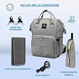 Grande Capacit: Questa borsa a pannolino ha tasche interne e 13 esterne, le tasche di portaoggetti separate possono facilmente organizzare tutte gli articoli e i prodotti per bambini. Comprendente 2 tasche per bottiglia di latte di isolamento termico, tutti sono in una grande tasca situata nella parte anteriore della borsa, pu mantenere il liquido caldo o fresco per diverse ore, una tasca di organizzazione e una tasca per bottiglia d'acqua e 6 tasche all'interno.