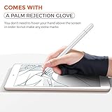 Supporta rifiuto del palmoViene fornito con un Artist Guanto, appoggia la mano sullo schermo senza preoccuparsi che il palmo venga rilevato dallo schermo capacitivo. I guanti possono essere applicati su entrambe le mani destra e sinistra.