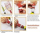 Facile da Usare: segui questi semplici passaggi per installare questo raccoglitore di frutta senza sforzo, senza bisogno di strumenti aggiuntivi. Collegare il cestino al palo, stringere a mano il morsetto aggiornato (fornito), agganciare i frutti con i denti del raccoglitore e tirarli nel cestino.