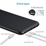 Multi Input & iSmart Output Grazie al Multi Input & iSmart Output porta godere dellampia compatibilit di 26800mAh Power Bank che supporta 3 porte USB da ricarica ad alta velocit, Micro USB / Lightning / Type-c e 4 porte USB Smart identification in uscita (1 USB C +3 USB A). Con 26800mAh Power Bank si pu rilevare e regolare automaticamente lintensit di corrente per ottenere la massima velocit di ricarica.
