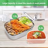 2 Scomparti e Rimovibili: ci sono due scomparti per alimenti da 0,45 L e 1,5 L, la scatola per il pranzo elettrica in acciaio inossidabile rimovibile e molto facile da pulire per risparmiare tempo