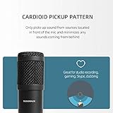 Il microfono a condensatore professionale adotta il circuito di audio completamente nuovo. Pu catturare il suono ricco e pieno dalle fonti che si trovano direttamente di fronte ad esso. Il modello pick-up cardioide riduce al minimo i rumori dello sfondo ed individua la fonte di suono principale.
