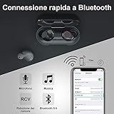 TWS & BLUETOOTH 5.0Gli auricolari wireless sono dotati di chip Bluetooth 5.0 che permette di mantenere una connessione stabile e a bassa latenza fino a 49 piedi di distanza quando si gioca o si guardano video. 2 auricolari hanno il microfono incorporato ed possibile utilizzare uno di essi a propria scelta per effettuare chiamate.
