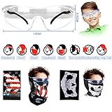 Assicurati che la sicurezza - kit di giubbotto tattico per bambini con confezione da 2 pezzi e occhiali protettivi ti proteggeranno anche dall'attacco a sorpresa. Occhiali protettivi flessibili proteggono i tuoi occhi e ti danno l'aspetto acuto di un serio concorrente. La maschera tattica protegge il tuo viso e offre un fantastico effetto visivo spaventoso al concorrente.