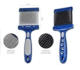 Design umanizzato - La spazzola per cani ha un numero diverso di denti in doppia faccia che possono essere ampiamente usati sia per la pelliccia che per i capelli di animali domestici. E il pettine per animali domestici stato progettato con uno Slip-Proof e una presa comoda che si adatta alla tua mano. Lunghezza totale: 19 * 5,5 cm, denti doppi.