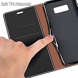 Cover con Slot Carte e Portamonete, potrete trasportare il vostro carte di credito e contanti, senza dover portare con voi il portafogli Realizzato con qualita Pelle e Morbida Silicone interna La flip cover pu essere convertita in sostegno, supporto per il telefono in posizione orizzontale, ideale per guardare video Progettato per Samsung Galaxy S8 Duratura e resistente all'usura, protegge lo schermo dai graffi e polvere