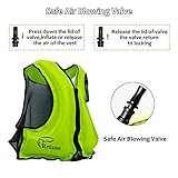 Gilet gonfiabile portatile da nuoto: il gilet da nuoto Rrtizan ha solo bisogno di circa 10 secondi per gonfiarlo completamente con la bocca. Dopo la sgonfia, la dimensione pieghevole di circa 28 x 18 x 2 cm, il peso di 0,3 kg, solo una dimensione del libro, ingombro ridotto, comodo da trasportare. Giubbotto gonfiabile ideale per viaggi, sport acquatici, kayak, canottaggio, snorkeling.
