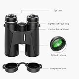 12*42 Binocolo Professionale PotenteObiettivo grandangolare professionale 12x 42mm, ingrandimento 12x e campo visivo da 114 a 1000m, in modo da poterti avvicinare al mondo, puoi Utilizzare il binocolo in condizioni di scarsa luminosit, ma non in ambienti completamente bui.