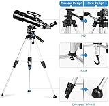Il telescopio da viaggio portatile [IMMAGINE CHIARA E AD ALTO CONTRASTO] ha una lunghezza focale di 400 mm e un'apertura di 70 mm.L'ampia apertura di 70 mm offre un maggiore ingresso di luce e l'obiettivo in vetro ottico completamente rivestito migliora la trasmissione della luce, consentendo al telescopio di vedere un campo visivo pi ampio e ad alta definizione.Il telescopio ideal