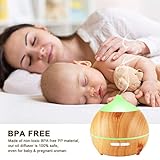 Colori rilassanti a 7 LED - Questo diffusore ha 2 diverse impostazioni di aromaterapia e funge anche da luce LED con 7 opzioni di colori.Tutte le luci possono essere regolabili tra luminose e scure, o completamente disattivate. Luce con il tuo umore, per leggere, rilassare, yoga, spa o mettere nella stanza dei bambini.
