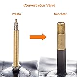 Meterial di alta qualit: Ad eccezione di 2 valvole in plastica dura, Bicicletta Adattatore per Valvola Prodotto da rame puro di alta qualit,set di valvole per biciclette sono molto resistenti, estremamente resistente alla corrosione e durevole, non cambia colore dopo