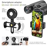 Adatta cellulare e messa a fuoco facile Il binocolo professionale offre un supporto per telefono regolabile compatibile con tutte le marche di smartphone. Binocolo per visione notturna con larghezza regolabile per adulti e bambini. Puoi facilmente concentrarti sul bersaglio con un anello di messa a fuoco centrale e la regolazione diottrica. Adatto per birdwatching, caccia, eventi sportivi, concerti.