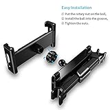 FACILE DA MONTARE & ROTAZIONE A 360 GRADI: Basta che regola l'asta orizzontale estensibile di questo supporto e poi attaccalo sull'asta di poggiatesta in qualche secondo. Grazie al connettore sferico scivolo progettato, questo supporto tablet pu ruotare a 360 gradi per ottenere una migliore visione.