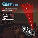 - Orologio di Proiezione Regolabile a 180& Stazione Meteo HD: la gamma di proiezione al soffitto o parete di 0,5 ~ 3 m, e la distanza di proiezione ottimale di 1,5 ~ 3 m. L'angolo di proiezione pu essere regolato a 180 gradi. Modalit opzion