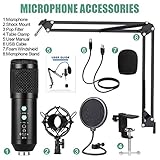 - Set microfono completo: la confezione include microfono a condensatore, supporto antiurto in metallo, supporto per braccio regolabile, supporto per montaggio su scrivania, filtro pop, parabrezza in schiuma, cavo USB verso e un manuale.