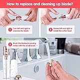 - Pratico e igenico: la testina del cutter rimovibile e lavabile. Puoi toglierla e risciacquare sotto il rubinetto dopo ogni uso. Il pennello di pulizia incluso aiuta a mantenere il dispositivo di rimozione di peli e sopraccigli pulito e igienico.