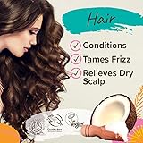 - USI PRINCIPALI: L'olio di cocco multiuso profondamente idratante per capelli belli e setosi ricchi di sostanze nutritive per unghie sane. Contro la dermatite da pannolino, olio per massaggi, esfoliazione del corpo, idratante naturale, trattamento per capelli, balsamo per le labbra, levetta per la b