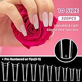 - Varie dimensioni e lunghezza perfetta: 500 pezzi di unghie, disponibili in 10 misure, numerate da 0 a 9. Questo nail design da ballerina ha colori chiari e pu essere adattato alla tua lunghezza, adatto per le dita della maggior parte delle persone.